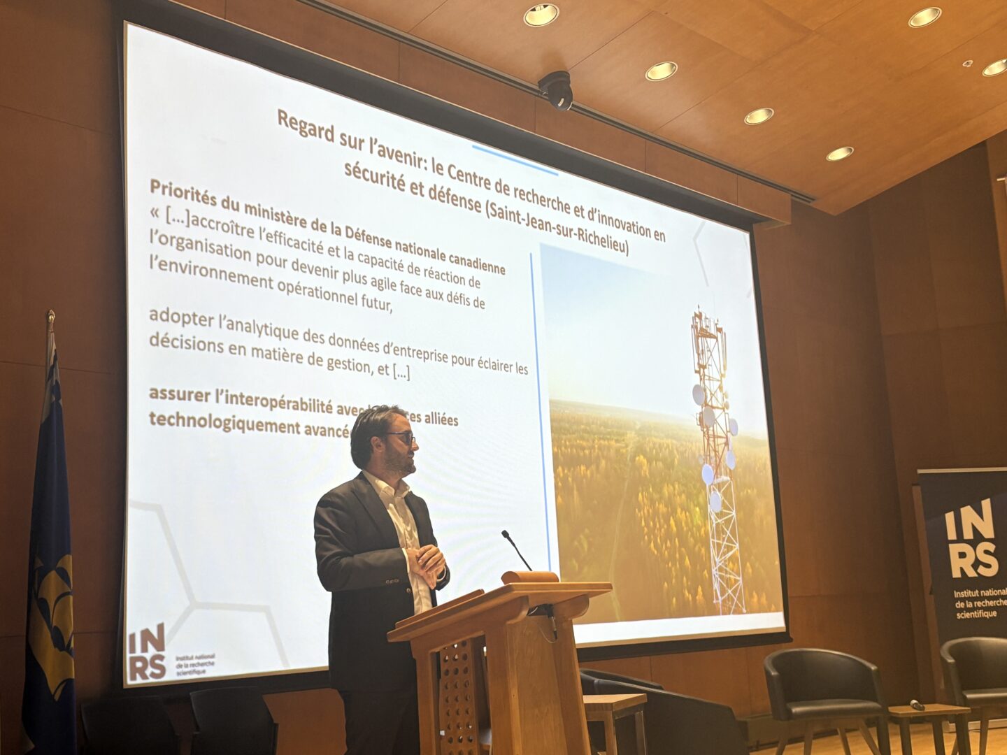 Tenu à l’amphithéâtre de l’ENAP à Québec, cet événement, sur invitation, a réuni des leaders universitaires et industriels des secteurs de la défense et de la sécurité nationale. Les discussions portaient sur des domaines jugés prioritaires par le ministère de la Défense nationale (MDN) et les Forces armées canadiennes (FAC) : l’intelligence artificielle, la cybersécurité, les sciences quantiques et l’espace.